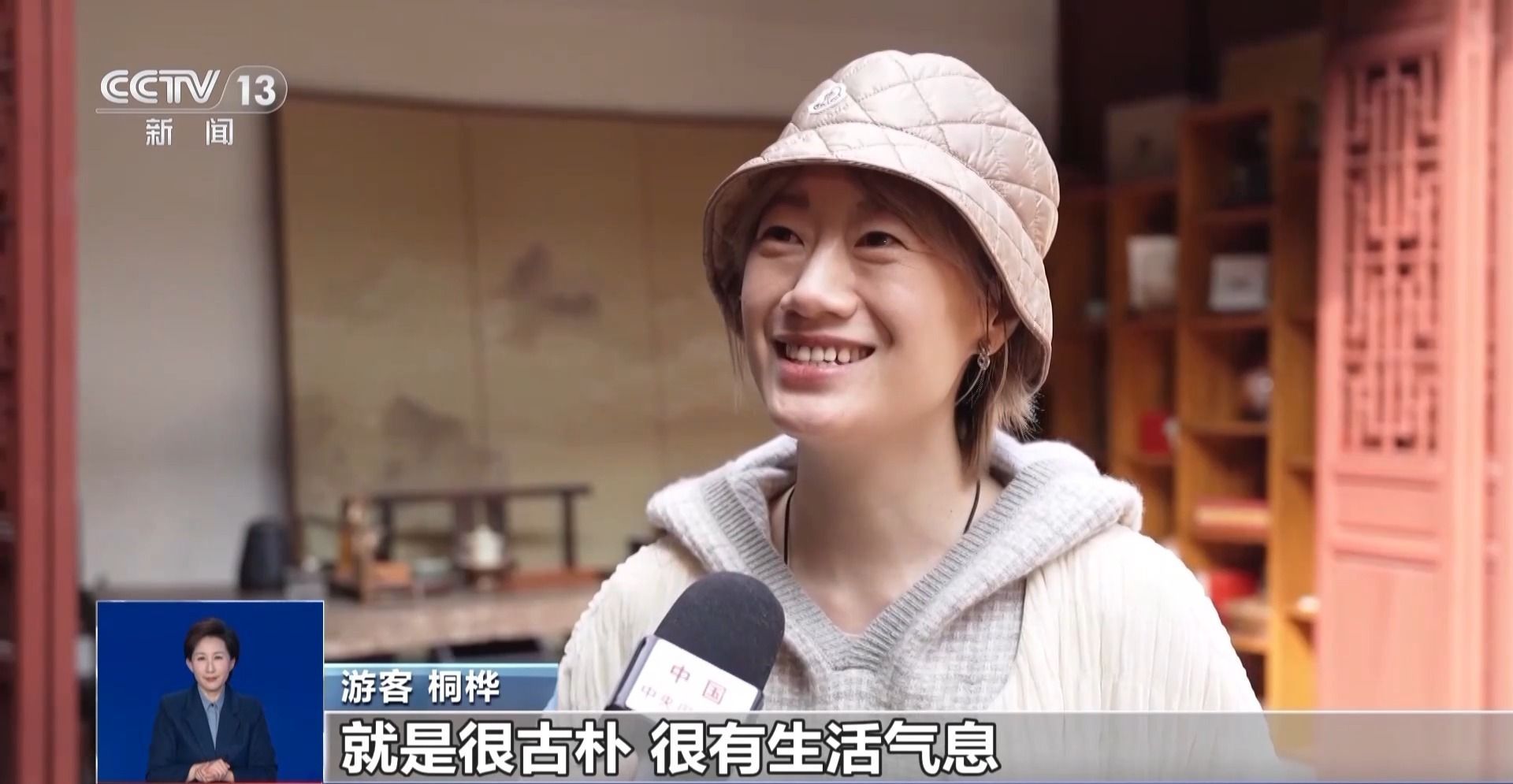 游客桐桦:我觉得闽南文化的感觉特别强,就是很古朴,很有生活气息。看了金苍绣,很多很多的针法,我第一次了解金苍绣,特别震撼。