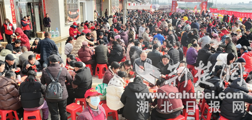 农家宴席热闹开筵,趣味活动欢畅纷呈。每日上午十一时,两百余桌农家流水席准时启幕,6000余人参加农家宴。“步步糕升”、“蒸蒸日上”、“年年有鱼”“全家福暖胃汤”等八道地道乡肴依次上桌,宾客十人围坐一桌,在热气腾腾的烟火气中感受团圆温情。趣味活动区人气爆棚、欢乐不停,挖荸荠体验区里,大人小孩挽袖躬身,在田间泥地中尽享农作趣味;套大鹅、掷圈等游戏区域人头攒动,欢笑声与惊呼声交织不断。