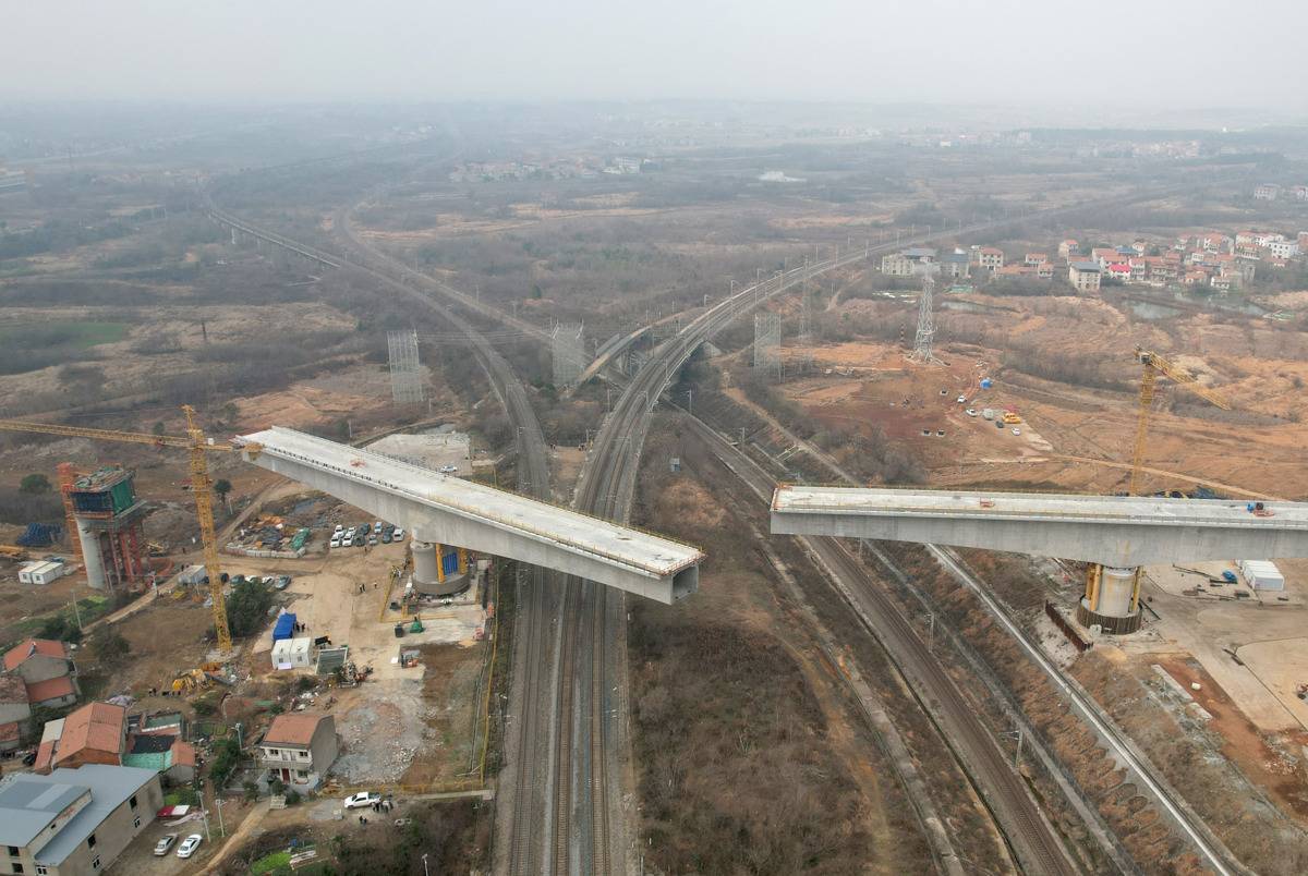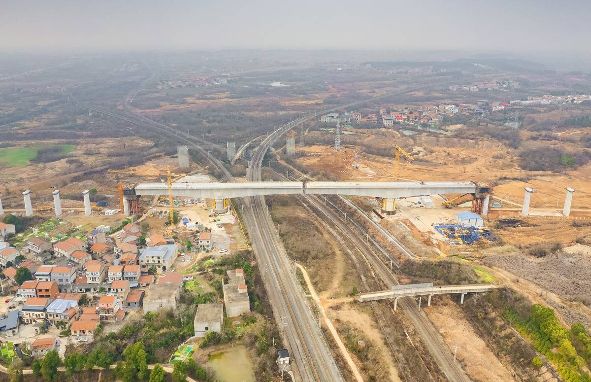 1月28日,由国铁武汉局武汉工程建设指挥部建设管理、中铁七局承建的合武高铁塘埠口滠水特大桥400号墩连续梁,在历经精密操控后顺利完成转体,与此前已就位的399号墩连续梁实现“空中牵手”。这标志着合武高铁建设中跨越铁路营业线最复杂、风险最高的“咽喉工程”圆满收官,为全线后续施工奠定了坚实基础。合武高铁建成通车后,将进一步压缩武汉至合肥的时空距离,加速两地及沿线城市融入“1小时通勤圈”,对优化长江经济带综合交通体系、促进区域协调发展具有深远意义。(湖北日报全媒记者 柯皓 通讯员 雷霄 冯茁蕾 摄)