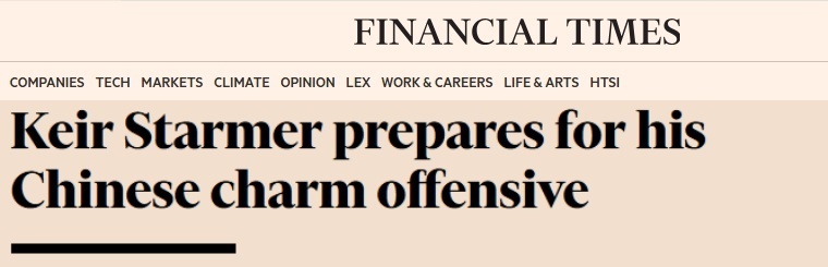 英国《金融时报》的报道,斯塔默首相明确表示,希望摆脱保守党执政时期英中关系的“冰河时代”。他说,“有一种说法已流传多年,即中国是一个正在崛起的大国。现在它已经崛起了”。他认为,英国需要制定一套承认这种现实的对华政策。
