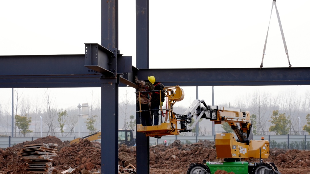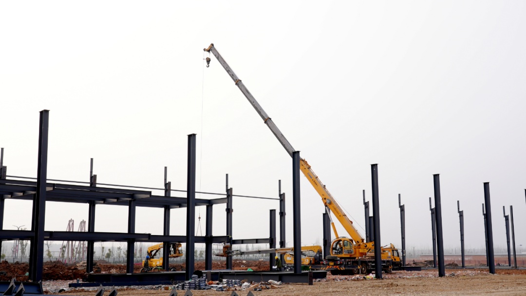 放眼望去,只见塔吊林立、焊花飞溅,钢构吊装如火如荼,机器轰鸣声此起彼伏。从热火朝天的桩基施工到紧张有序的设备安装,一幅“全速奔跑”的工业画卷正在这里徐徐展开。