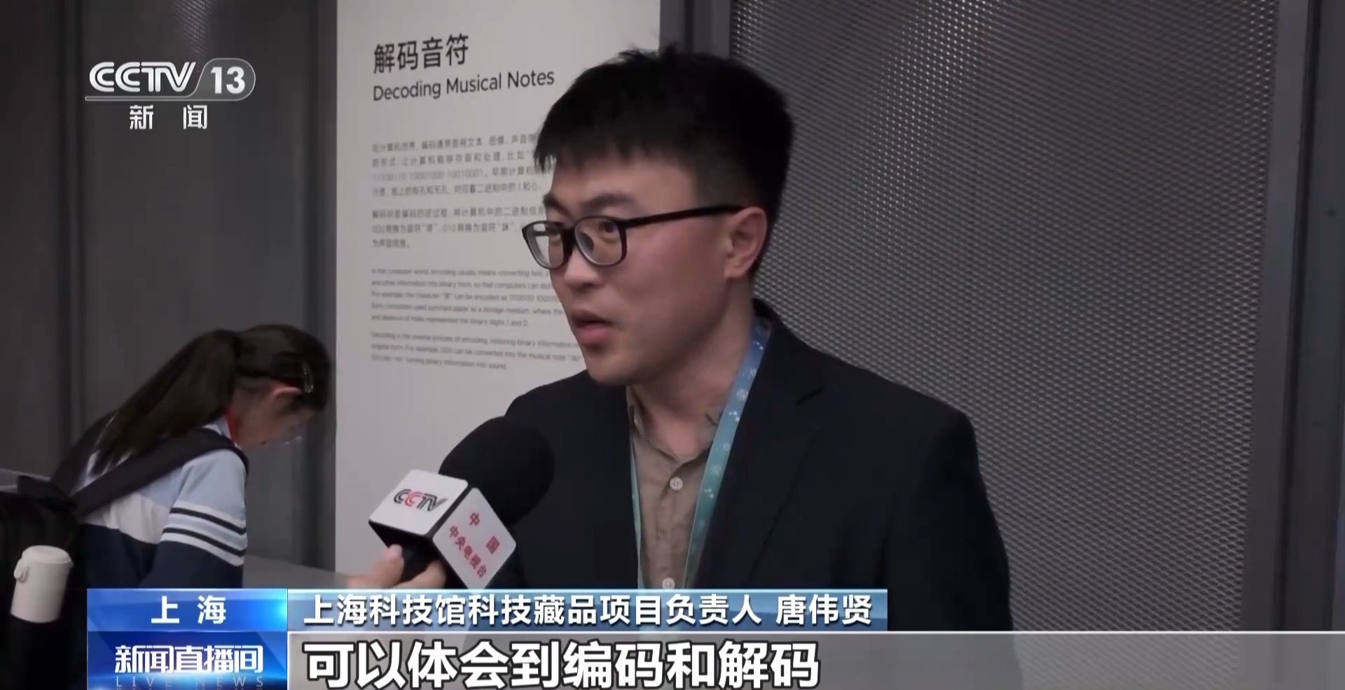 上海科技馆科技藏品项目负责人 唐伟贤:解码音符,我们要诠释编码与解码的概念,比如我们要打个电话,我们的声音传到电话里面,通过电话转换成电信号,电话的另外一端又转换成声音,这就是一个编码与解码的过程。通过这样的方式,可以体会到编码和解码这一概念的过程。