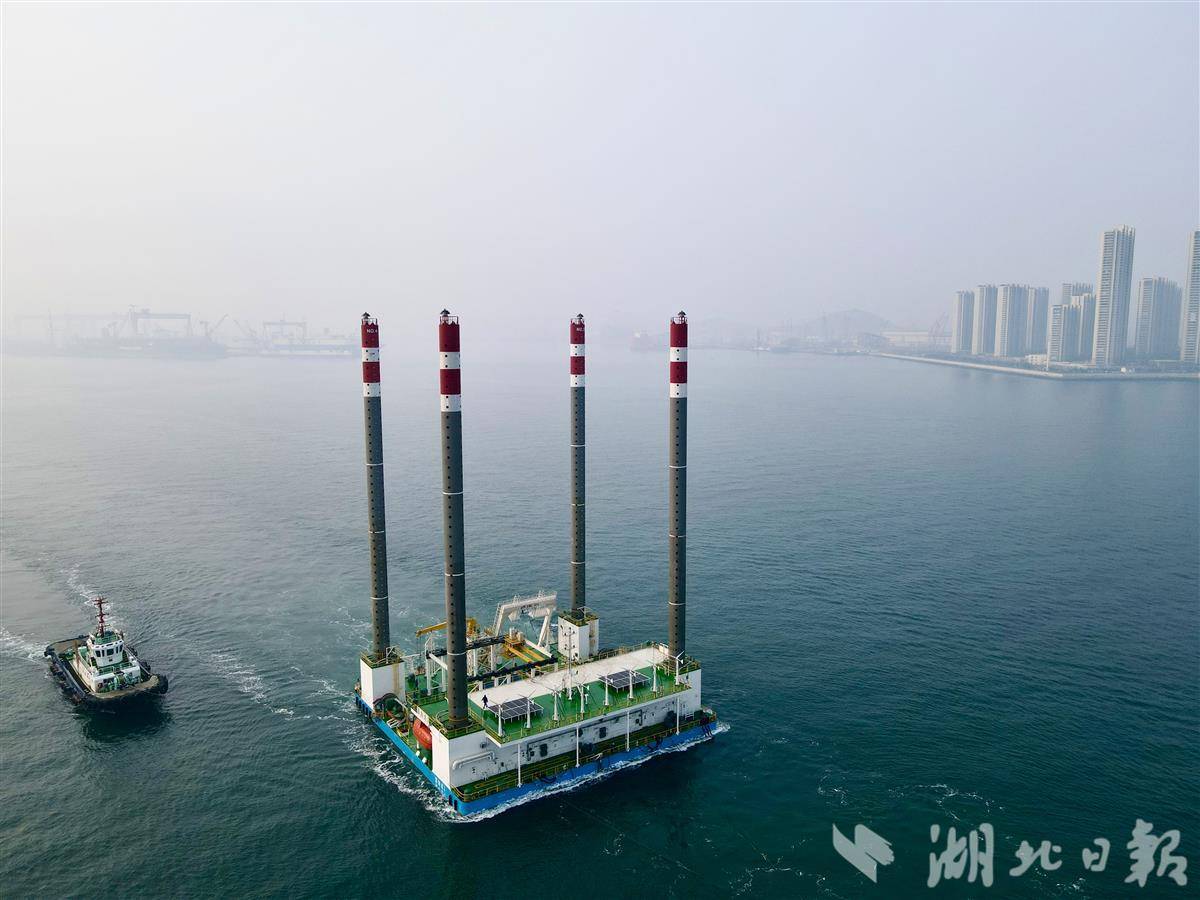 湖北日报讯(记者李源、通讯员张洪军、彭华欣)1月29日8时,由在汉央企中国船舶武汉船机为国家海洋综合实验场(威海)打造的自升式海上试验平台“国海试3”,从青岛海西重机码头启航发运。