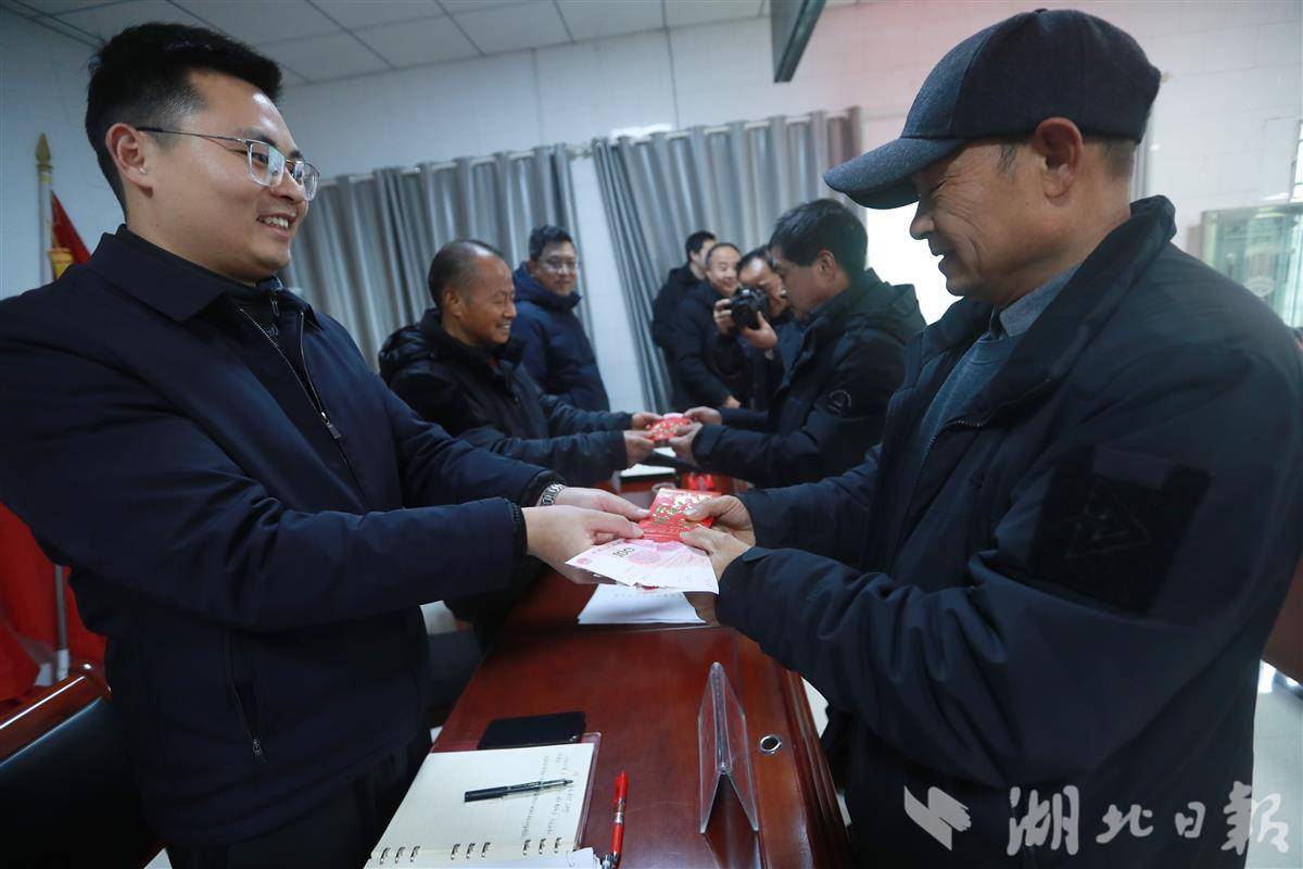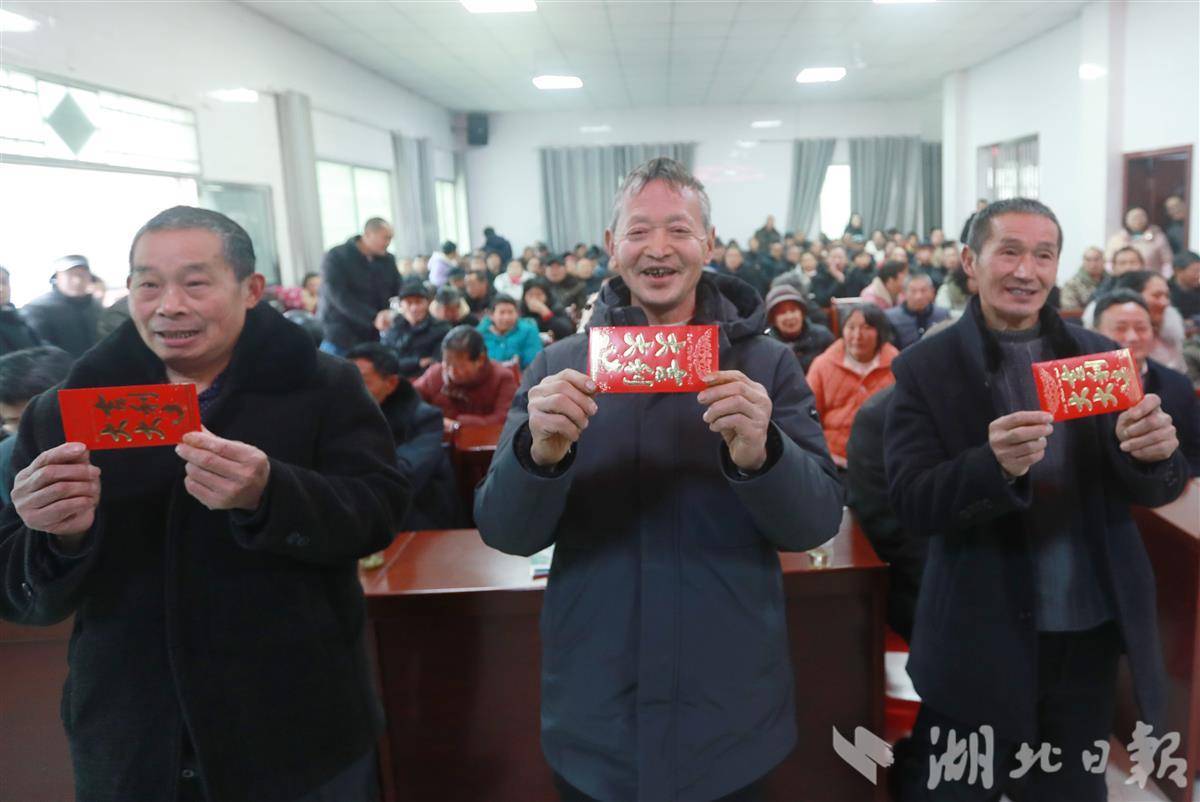 1月28日,秭归县九畹溪镇峡口茶叶专业合作社社员喜领红包。