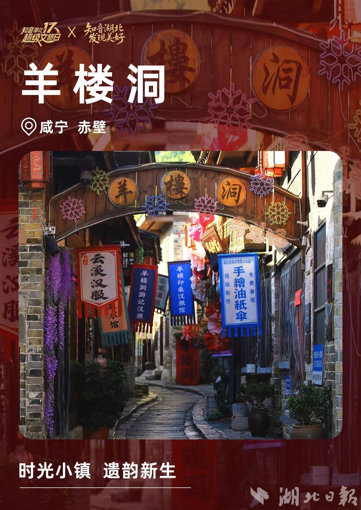 湖北日报讯(记者王理略、通讯员鄂文旅)1月29日,“知音湖北 发现美好”全媒体征集与推广活动正式发布“时光小镇·遗韵新生”榜单。宜昌秭归屈原故里非遗小巷、十堰竹溪武陵不夜城、十堰房县西关印象、孝感云梦祥云湾、黄冈黄梅东山问梅村、咸宁赤壁羊楼洞、恩施土家女儿城旅游区、恩施宣恩仙山贡水旅游区、潜江浩口镇、仙桃沔阳小镇等十个特色小镇悉数入选,为游客开启沉浸式非遗文旅新体验。