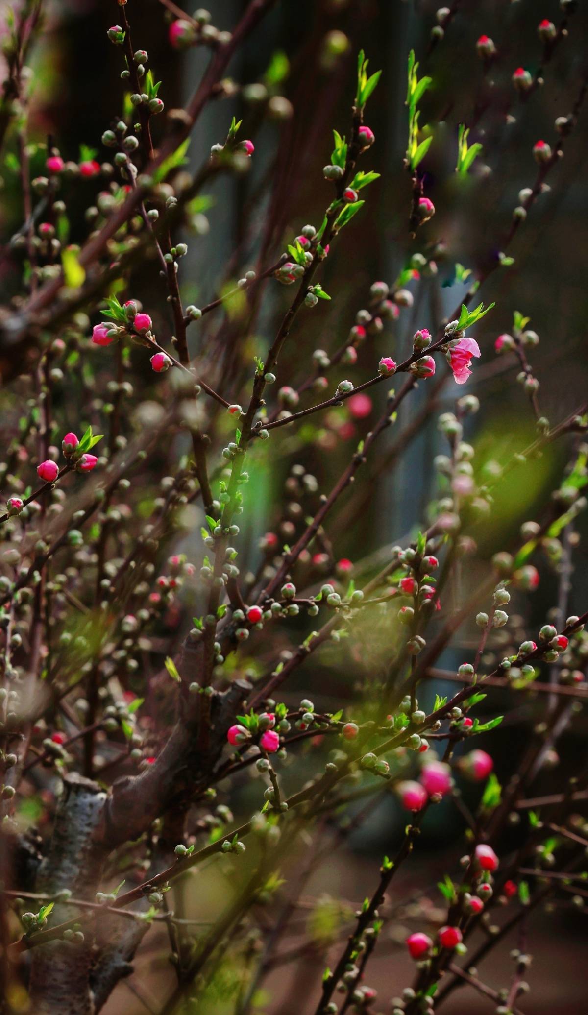 想象一下,粉嫩的花朵重重叠叠挂满枝头,横斜的枝干勾勒出别致的风姿。
