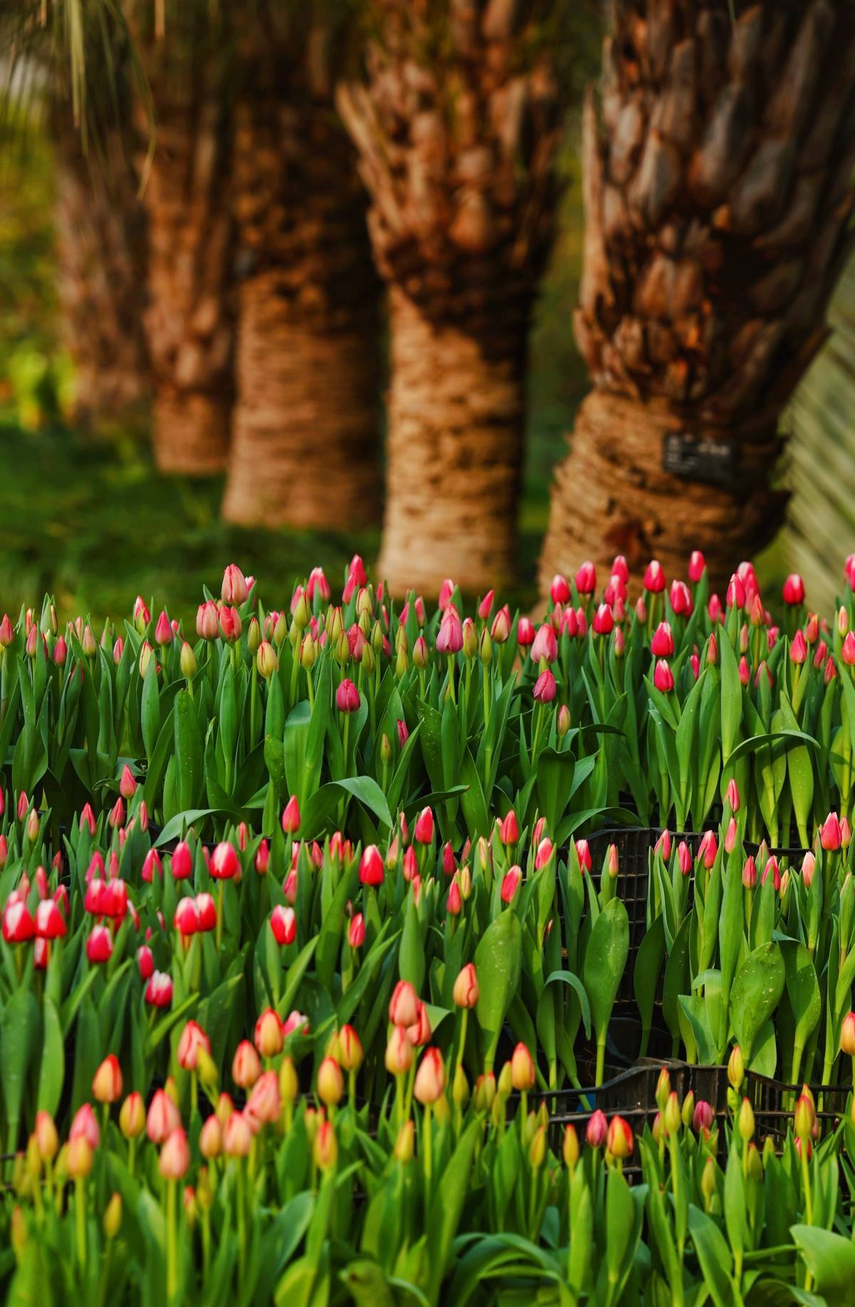 “红色印记”热烈奔放,“小黑人”神秘典雅,“荷兰构思”清新别致,“神秘范依克”自带高贵感,“纯金”则像洒满了阳光……11个品种的郁金香,主打一个暖色系暴击。