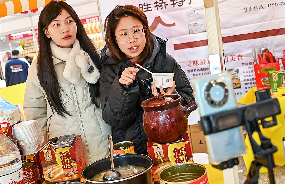 两名小网红为江夏贺胜桥鸡汤代言。