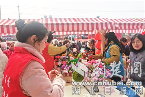 荆楚网(湖北日报网)讯(通讯员 赵继 钱春艳)近日,在钟祥市东桥镇“聚贤启新程,同心助振兴——接您回家·共筑东桥”年货展销活动上,东桥社区残疾人手工制品展位人气爆棚。由辖区残疾人亲手制作的扭扭棒花朵,凭借精美造型、鲜艳色彩,吸引众多赶集群众驻足选购,展出的近200瓶花朵很快销售一空。