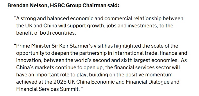 随着中国市场持续开放,基于2025年英中经济财金对话与金融服务峰会取得的积极进展,金融服务业将发挥重要作用。”