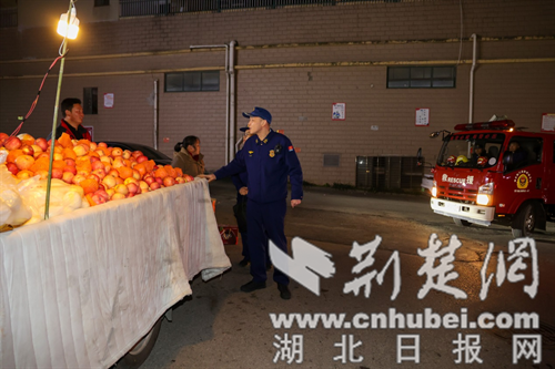 消防监督人员对占道经营的商贩进行现场普法劝导。魏欢欢 摄