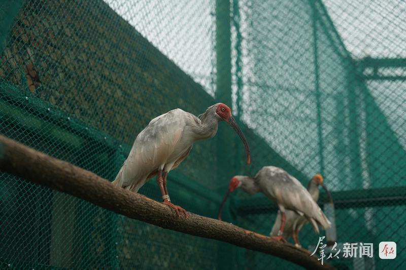 冬日的无定河畔寒风凛冽。在陕西榆林横山朱鹮繁育基地,40多只朱鹮悠闲踱步,一派恬静景象。