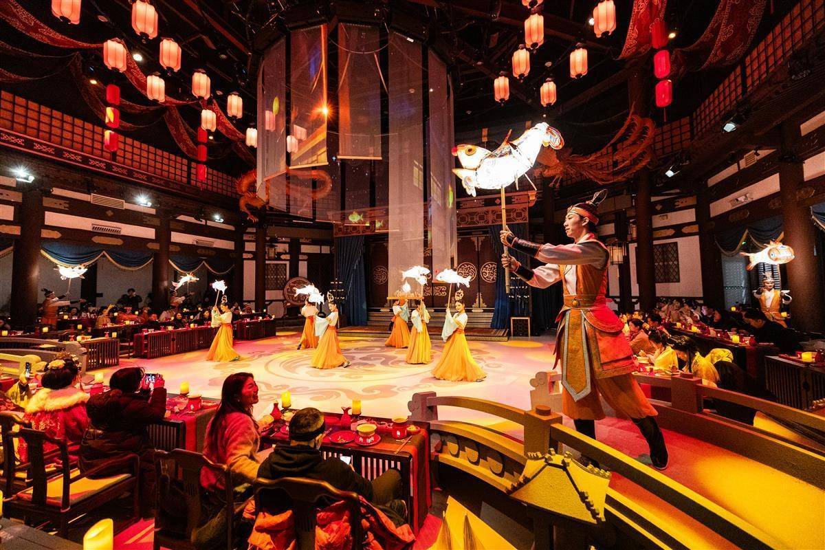 龟山知音殿本月启动试运营,推出沉浸式文化餐秀“三国群芳宴”,游客一边品美食,一边看演出。(湖北日报全媒记者 何宇欣 摄)