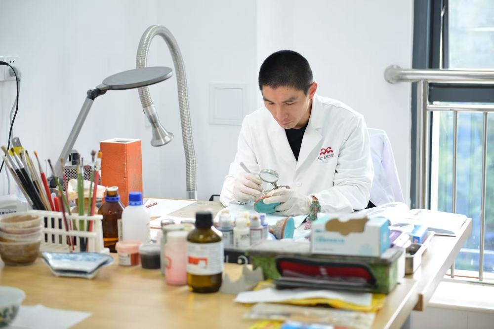 陈琦解释,有些修复步骤,就是需要用手去感受文物,戴上手套后一些精细的动作完成度可能会有偏差;而如果一位文物修复师,看上去在盯着文物“发呆”,也许他正在尝试“与文物创作者心意相通”,以便更精准地补色……