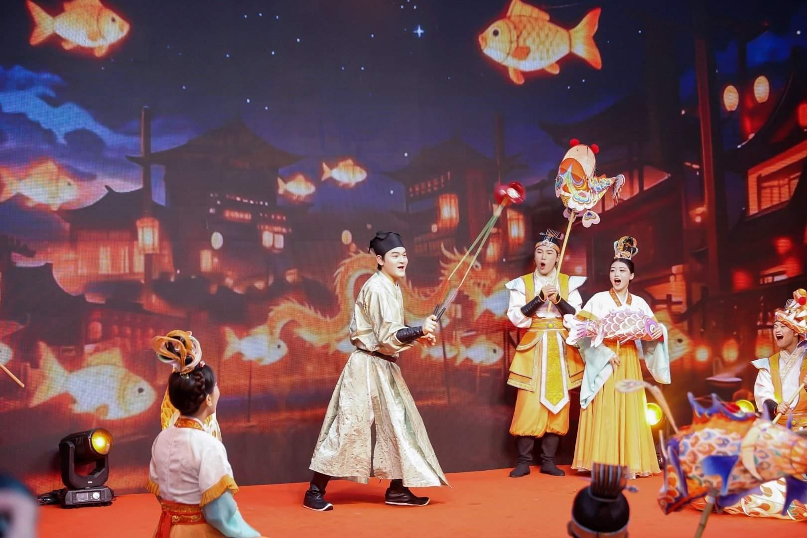 知音殿演员现场表演鱼灯舞。