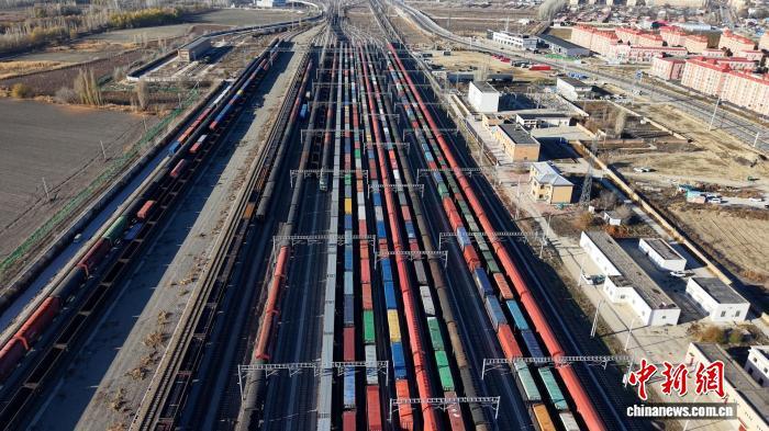 在新疆整装待发的中欧(中亚)班列。(资料图)胡嘉琛 摄