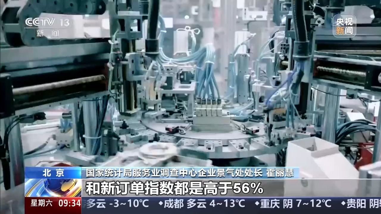国家统计局服务业调查中心企业景气处处长 霍丽慧:从行业来看,农副食品加工、铁路、船舶、航空航天设备等行业的生产指数和新订单指数都高于56%,相关行业产需释放较快。