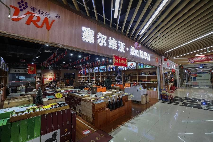 This photo shows a store selling imported goods at Yiwu China imported commodities mall in Yiwu, east China's Zhejiang Province, Jan. 30, 2026. (Xinhua/Xu Yu)■