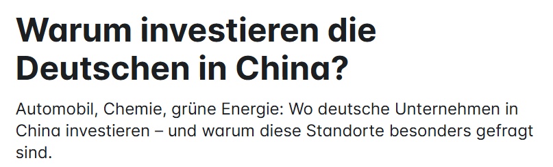中国对德国投资者有哪些吸引力?德国外交部授权设立的跨媒体平台deutschland.de近期发布一篇题为《德国人为何在中国投资?》的文章,对此进行了归纳和分析。