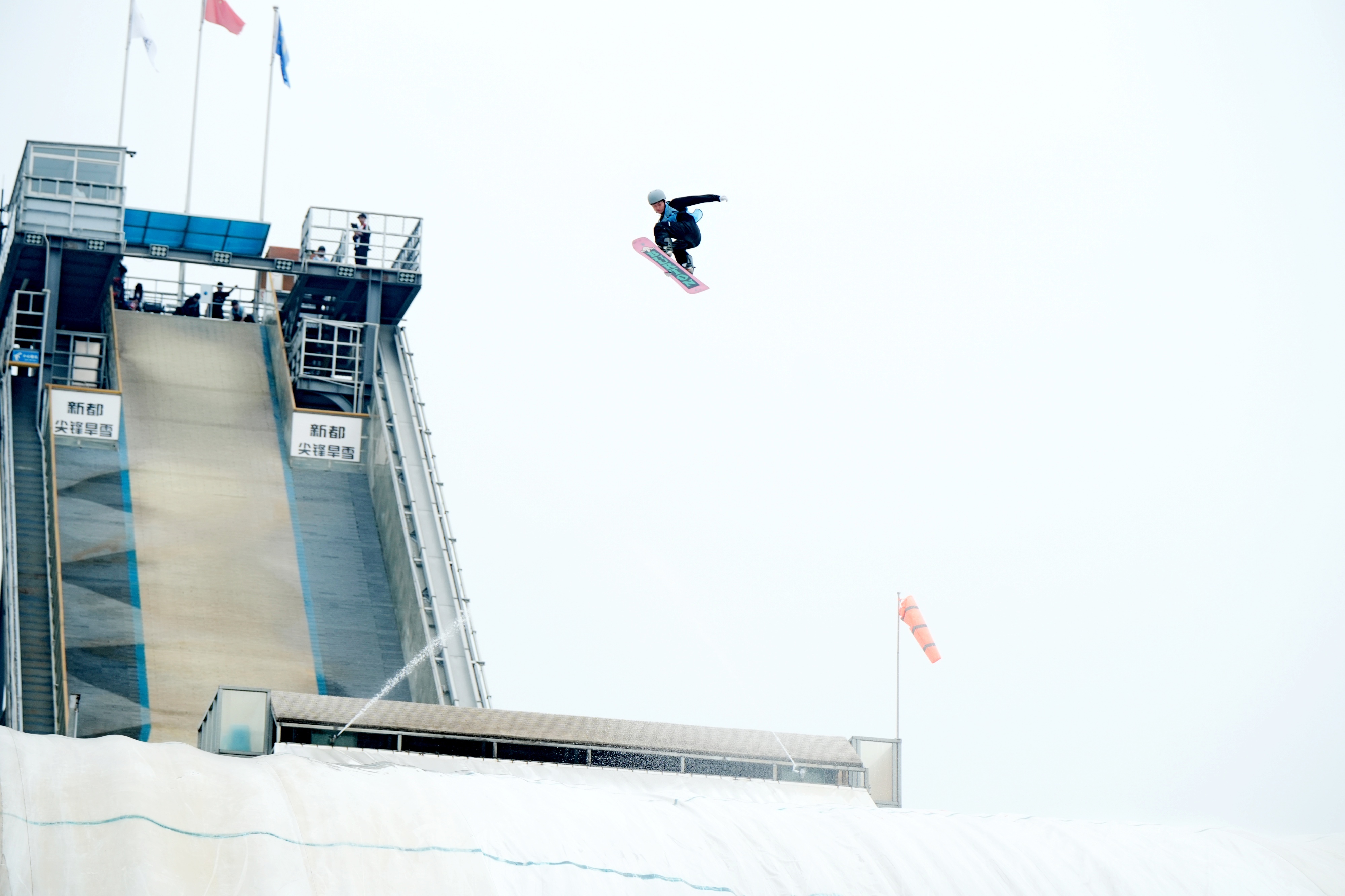 走到雪场最高处43米的大跳台旁,张魏指向落地处的“麦秆式气包”说:“这也是我们独创的,不会积水陷人,能让运动员平稳卸力。”
