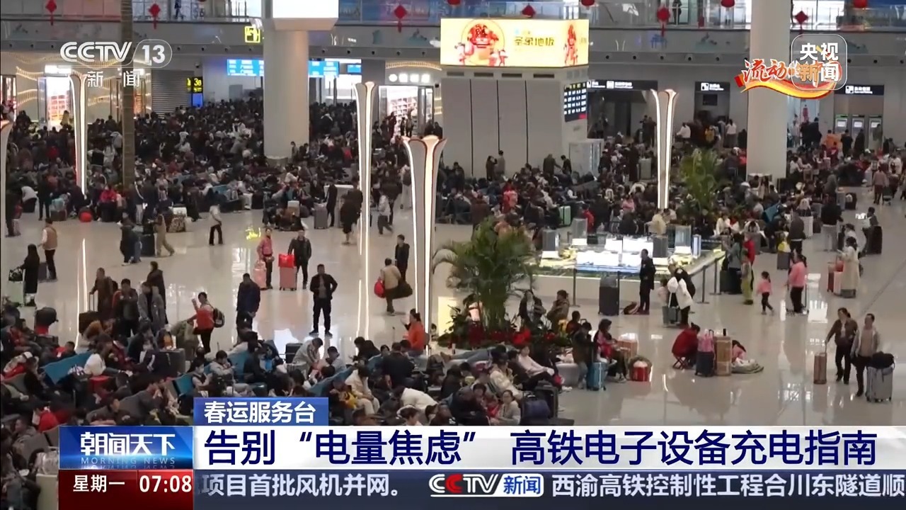 春运途中,手机、电脑、平板等电子产品是大家打发旅途时间的“快乐源泉”。电量告急时能否及时充电,是旅客关心的事。今年春运,为了方便旅客为电子设备充电,车站做了哪些升级?
