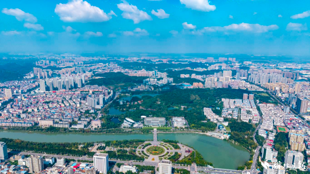 咸宁把城市放在山水间,蓝绿空间占比74.05%。(湖北日报全媒记者 魏铼 摄)