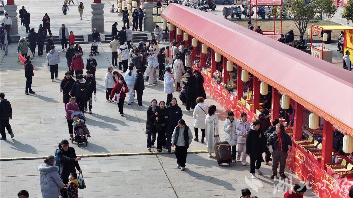 集市设有神州百货、湖北特产、非遗手礼等六大展区,展品丰富,满足市民一站式年货采购需求。