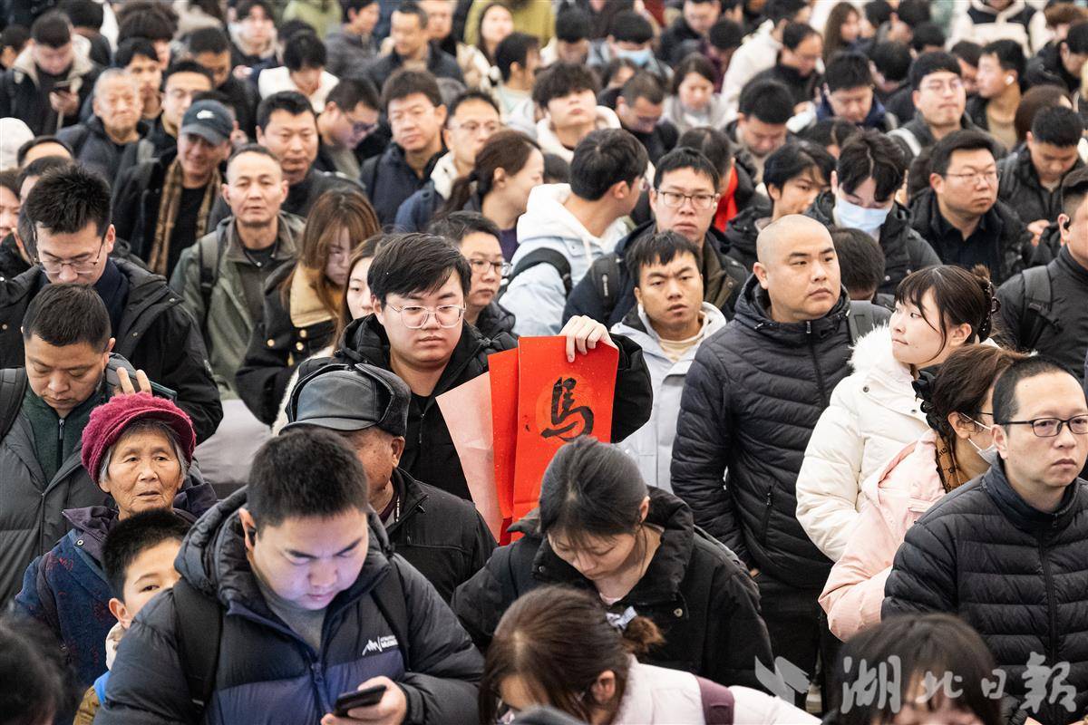 2月2日,2026年春运首日,不少旅客带着“福”字和春联在汉口火车站乘车返乡。当日,2026年春运正式开启,为期40天的春运将持续至3月13日。据交通部门预测,今年春运期间,全国全社会跨区域人员流动总量将再创历史新高,预计达到95亿人次。(湖北日报全媒记者 任勇 通讯员 宋萍 邱晟 摄)