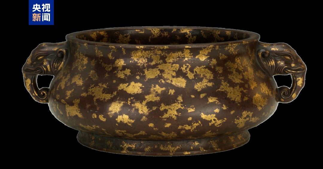 △清仿宣德款象耳洒金铜炉,天津博物馆藏。