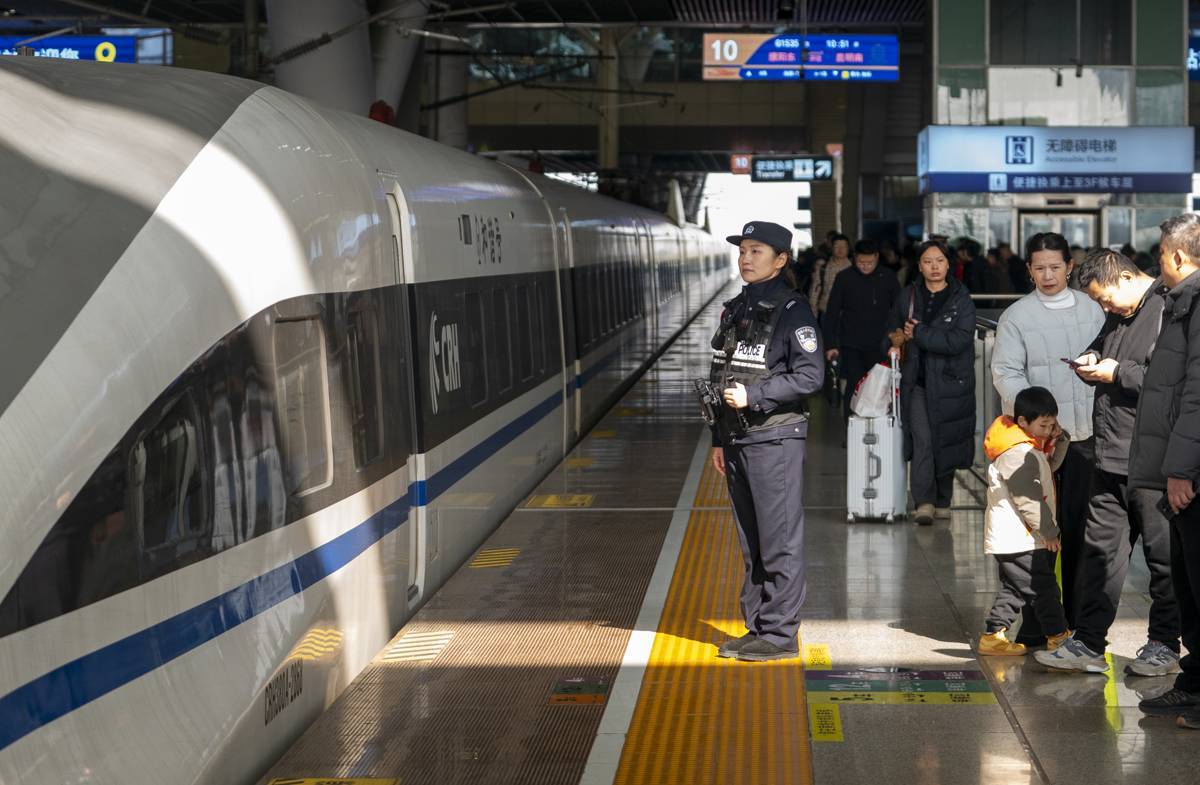 2月2日,武汉火车站,旅客们有序进站乘车。当日,为期40天的2026年春运启动。本次春运期间全国铁路发送旅客将达5.39亿人次,武汉地区节前高峰集中在2月13日(腊月廿六),节后返程高峰将出现在2月23日(正月初七)。春运期间,武汉铁路警方聚焦重点车站、重点线路、重点时段,加大巡逻防控力度,深化安检查危措施,严打盗窃、诈骗、倒票等侵害旅客权益的违法犯罪行为,持续开展隐患排查整治,动态调整安保策略,全力维护铁路运输秩序。与此同时,武汉客运段汉口城际动车组乘务车间同步升级春运服务举措,组织乘务人员开展春运服务礼仪培训,提升服务精细化水平,用耐心、细心、贴心的服务为旅客驱散旅途疲惫,为旅客打造温馨的旅途环境。(湖北日报全媒记者 魏铼 通讯员 王玉琪 周婷 摄)