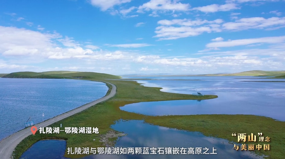 溯源至黄河源头,扎陵湖与鄂陵湖如两颗蓝宝石镶嵌在高原之上。