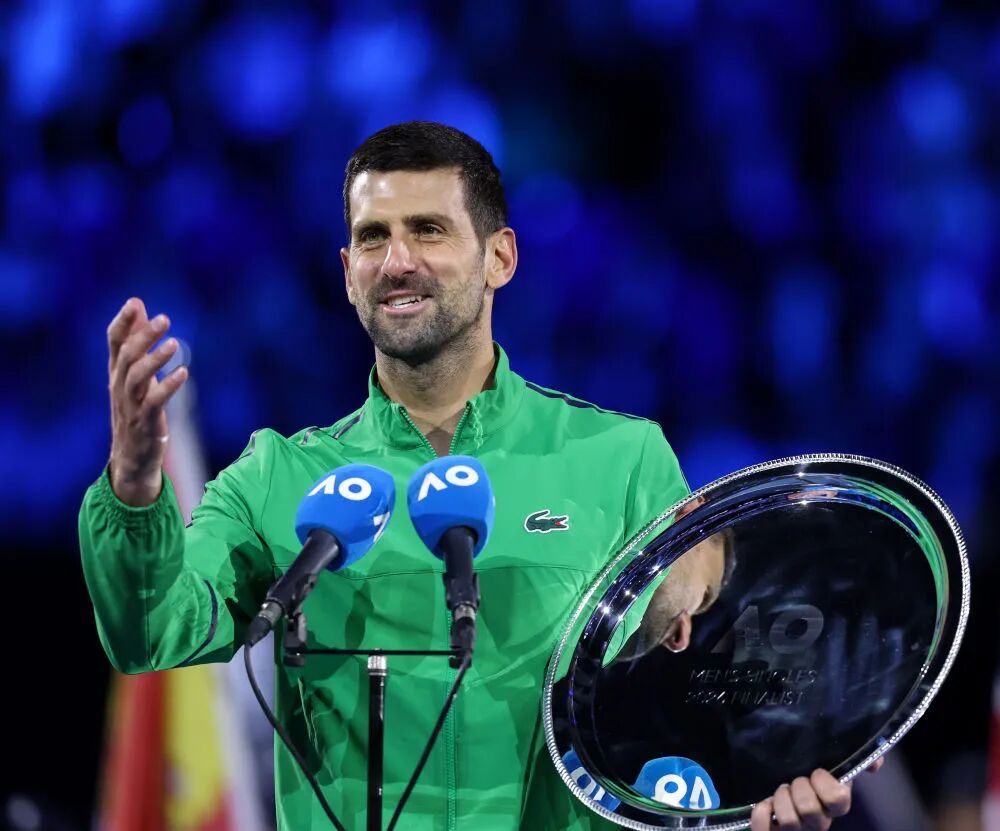 2023年1月29日,焦科维奇在2023年澳大利亚网球公开赛男单决赛的颁奖仪式上。新华社记者 郭磊 摄