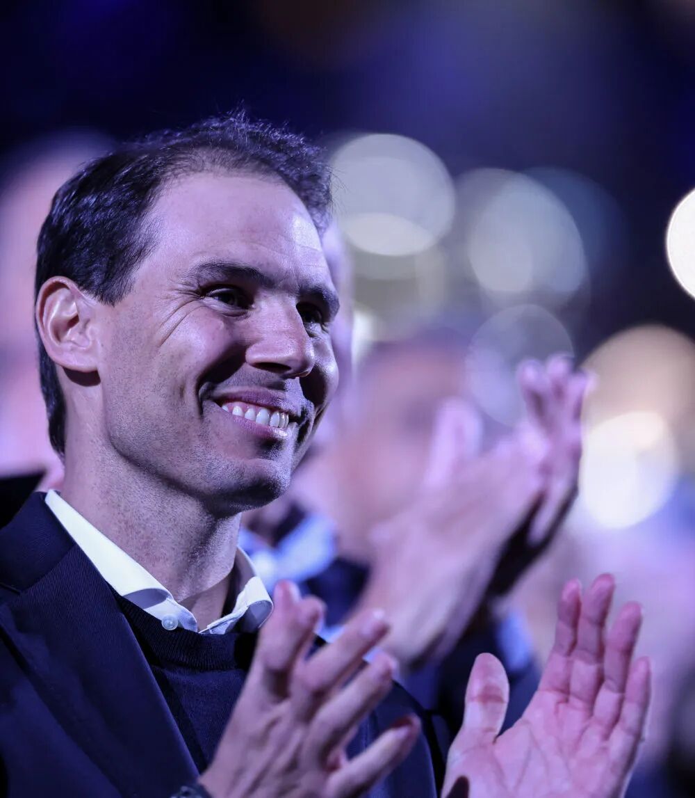 2月1日,纳达尔观看2026年澳大利亚网球公开赛男单决赛颁奖仪式。新华社记者 马平 摄