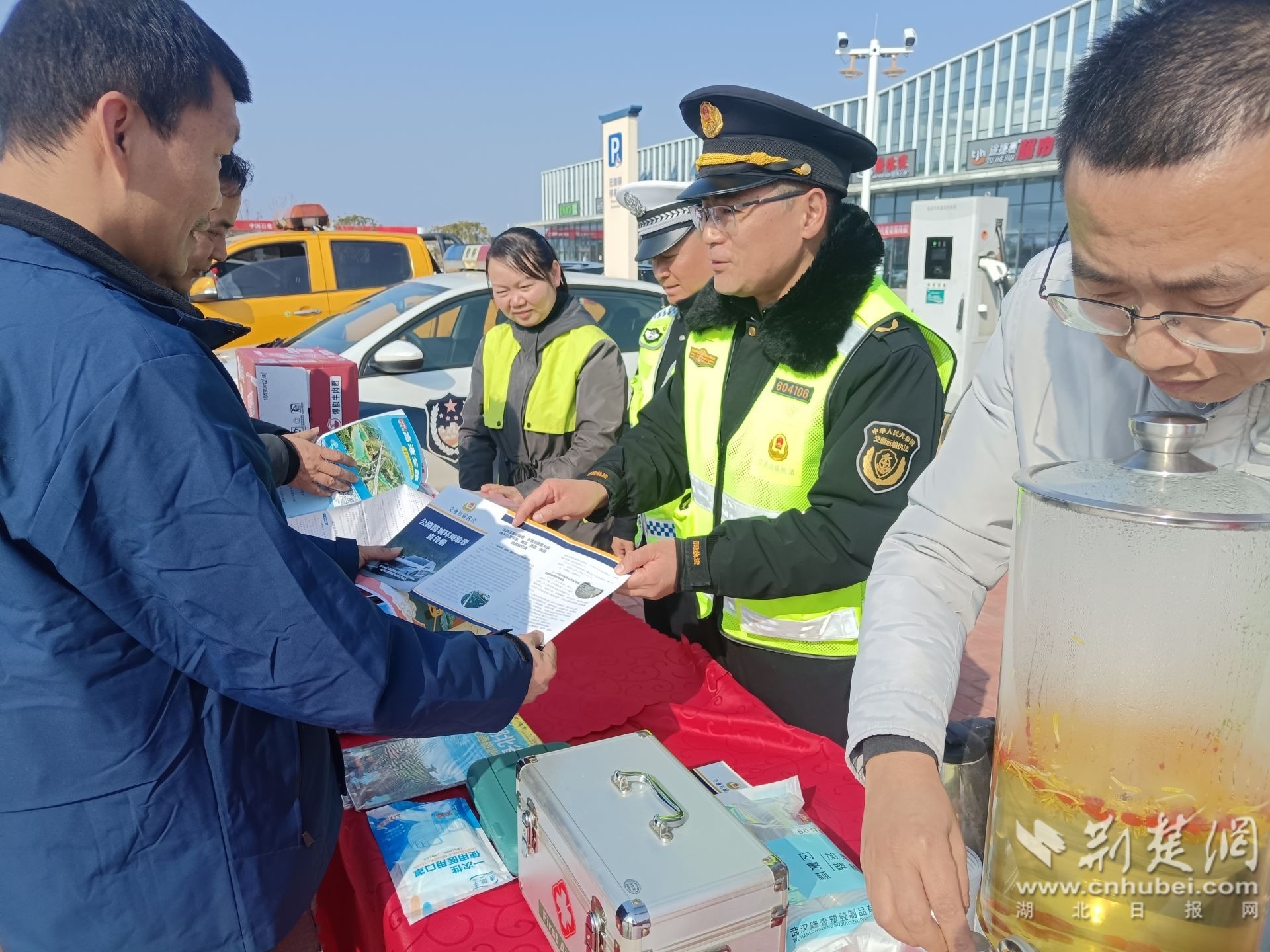 宣传点同步配备热水、应急药品、修车工具、行车指南、纯净水、方便面等物资,提供休息补给、爱心帮扶等暖心服务,让过往司乘在春运途中感受到贴心关怀。