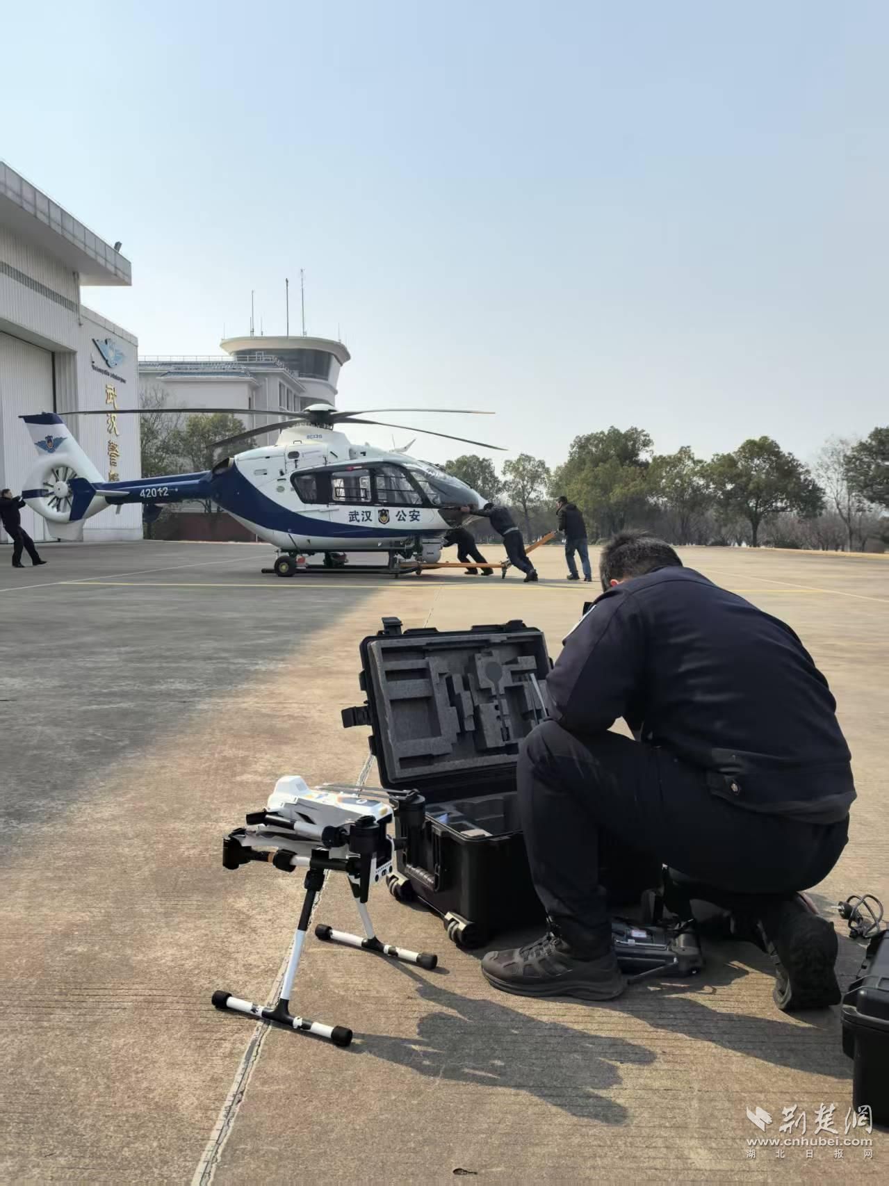1月24日,在武汉特警北部基地,一架EC135直升机被缓缓牵引出机库。机长李斯登上直升机,开启通电前检查,对飞机进行“热身”维护,确保它处于适航状态。