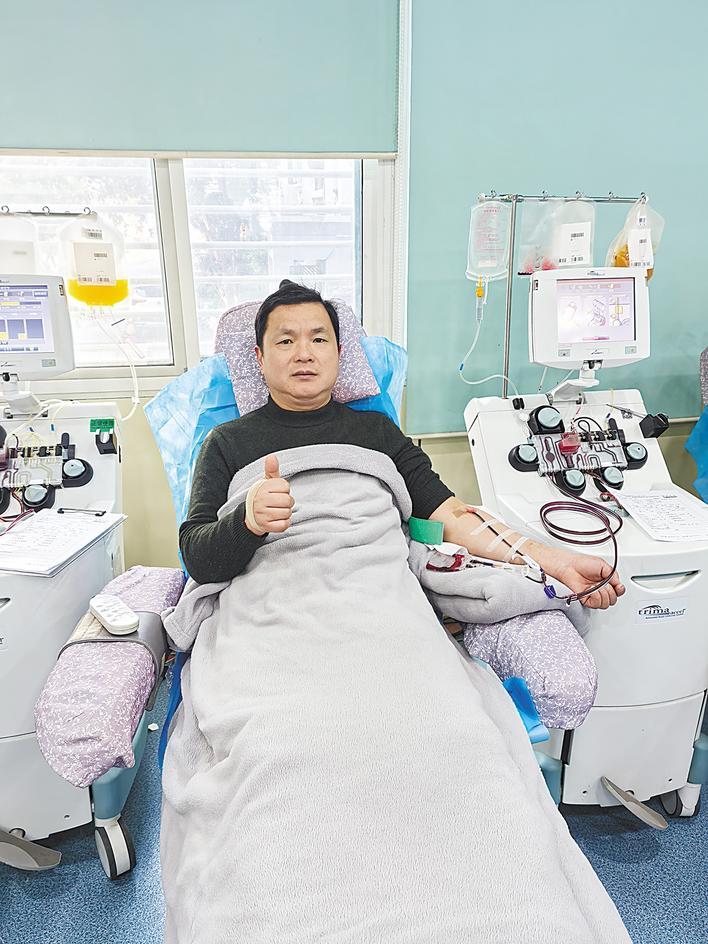 定期往返一次孝感血站,春秋更迭、风雨无阻,刘明旺坚持了20年。刘明旺和爱人经营着一家小型餐厅,承接各类小型聚会就餐。忙碌时,他既是老板,也是厨师、服务员。起初,他以捐献全血为主,后来听医生说,捐献血小板能更直接地用于临床、挽救重症患者生命,便毅然改为捐献成分血,捐献周期也从半年一次缩短至半个月一次。