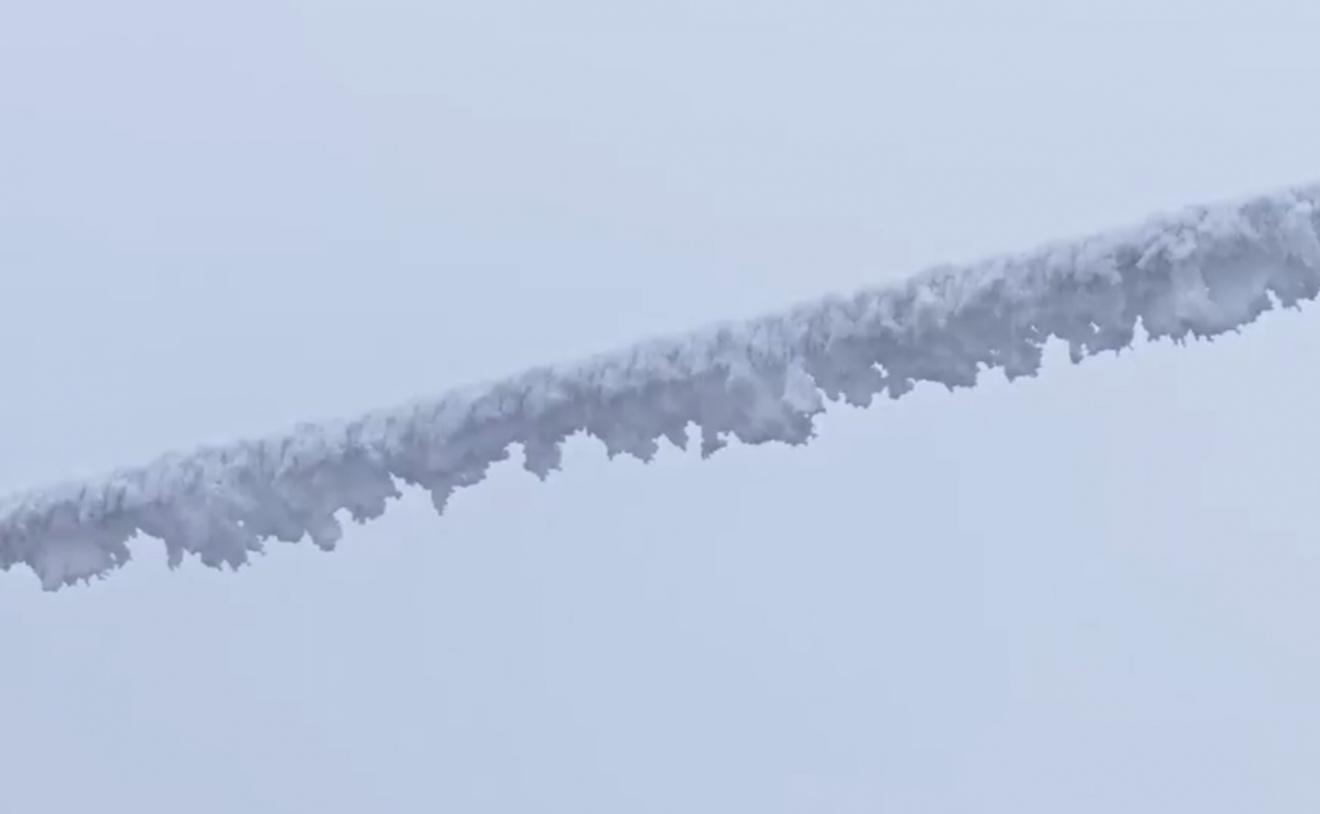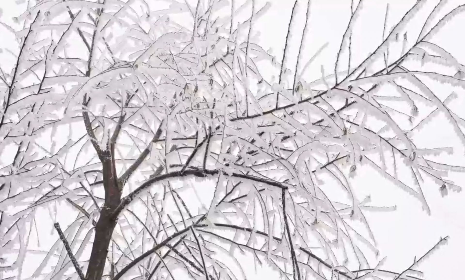 寒潮持续肆虐,黔东南州剑河县的崇山峻岭间已是冰山雪地,施黎乙线在这里翻山而过。植被裹着厚厚冰雪,形成连片雾凇。