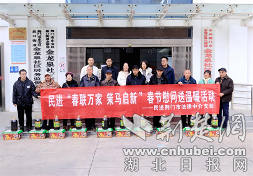 荆楚网(湖北日报网)讯(记者 安从斌 通讯员 李田瑞)2月2日下午,民进荆门市法律中介支部走进荆门市东宝区泉口街道金龙泉社区,开展“春联万家 策马启新”春节慰问活动,为社区困难群众送去了米、油、水果等慰问物资,以实际行动传递社会关爱。
