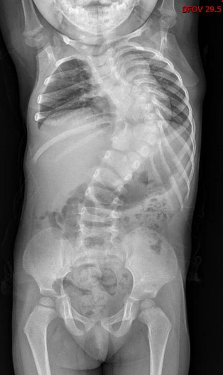 女童可可(化名)家住新洲,先天性椎体发育畸形。自出生起,她的脊柱就向左倾斜,整个身体异常扭曲。随着成长,弯曲日益加重。2岁时,可可脊柱倾斜度数已达到90度——上半身几乎被“折”成了直角。可可四处求医,可都因为畸形严重且复杂,矫形难度大,年龄小且治疗周期长,未来治疗存在不可预测性,迟迟没能得到有效救治。