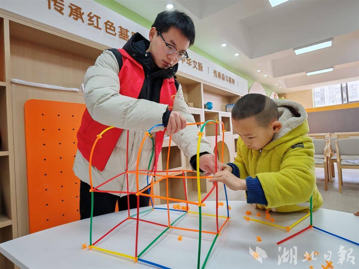 在十堰市快递物流园“爱心托管班”,活动教室布置温馨,图书绘本琳琅满目,文体器材摆放整齐,湖北医药学院“怡敏”志愿服务队的大学生志愿者们精心备课,为近30名园区物流企业职工子女带来课业辅导、手工制作、趣味运动场、红色故事会等丰富托管体验。