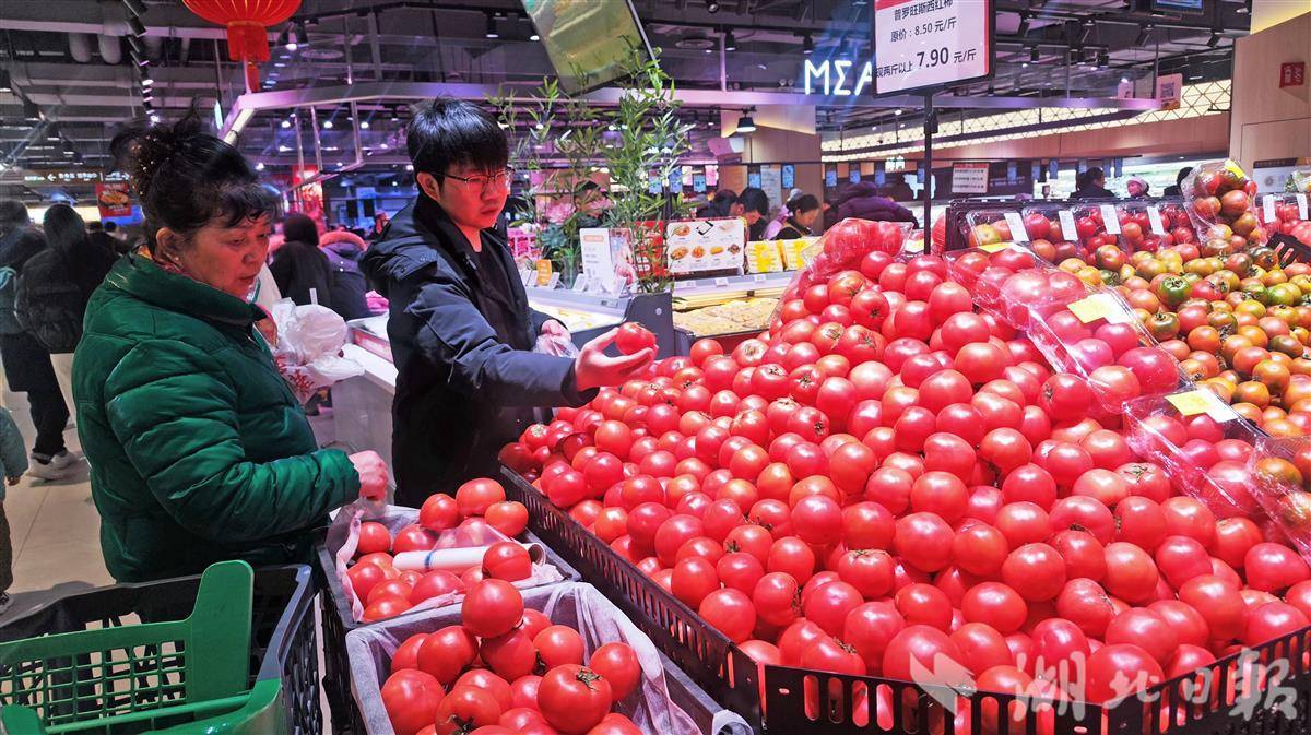 2月1日,在武汉市硚口区一家大型商场,市民采购新鲜蔬菜。