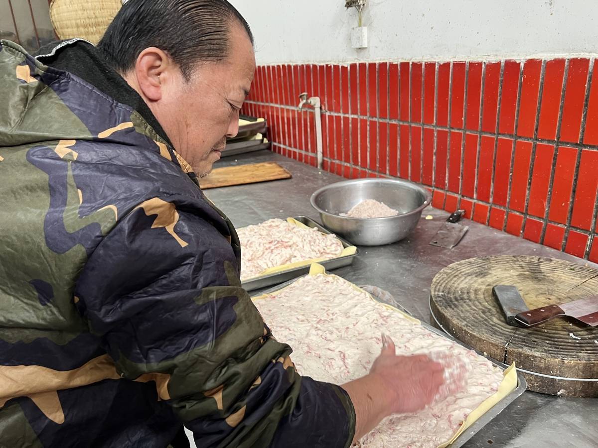 “我专程从前川开车过来,就是为了买上最地道的黄陂三鲜,寄给在内蒙和河北定居的亲朋。他们馋的,就是这一口家乡年味儿!”顾客刘先生和妻子一道前来,购买了近20斤黄陂三鲜。为了方便远方的亲朋品尝,他还将鱼糕小块分割,然后仔细打包。