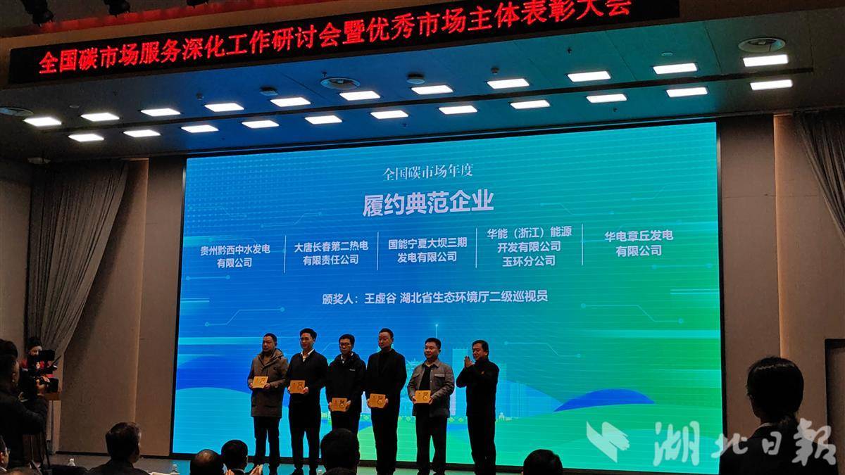 贵州黔西中水发电有限公司等10家企业获得“履约典范企业”称号;乌兰察布中联水泥有限公司等10家企业获得“优秀市场活力贡献企业”称号;安徽海螺水泥股份有限公司等11家企业获得“绿色转型先锋企业”称号;国家电力投资集团有限公司等10家企业获得“优秀碳资产管理企业”称号;中国民生银行获得“优秀结算服务机构”称号,中债金融估值中心有限公司等6家企业获得“碳指数创新实践机构”称号。