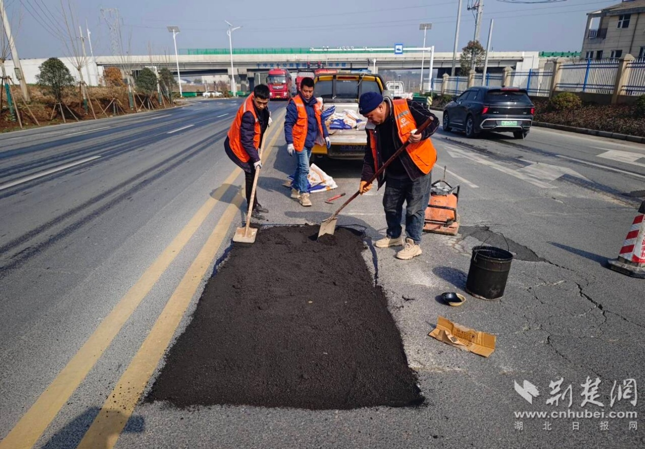 “近几轮降雪,导致路面损坏严重。目前正是春运高峰期,我们要抓紧时间修补道路坑槽,确保行车安全畅通。”南漳公路中心应急保障队队长张天成说。