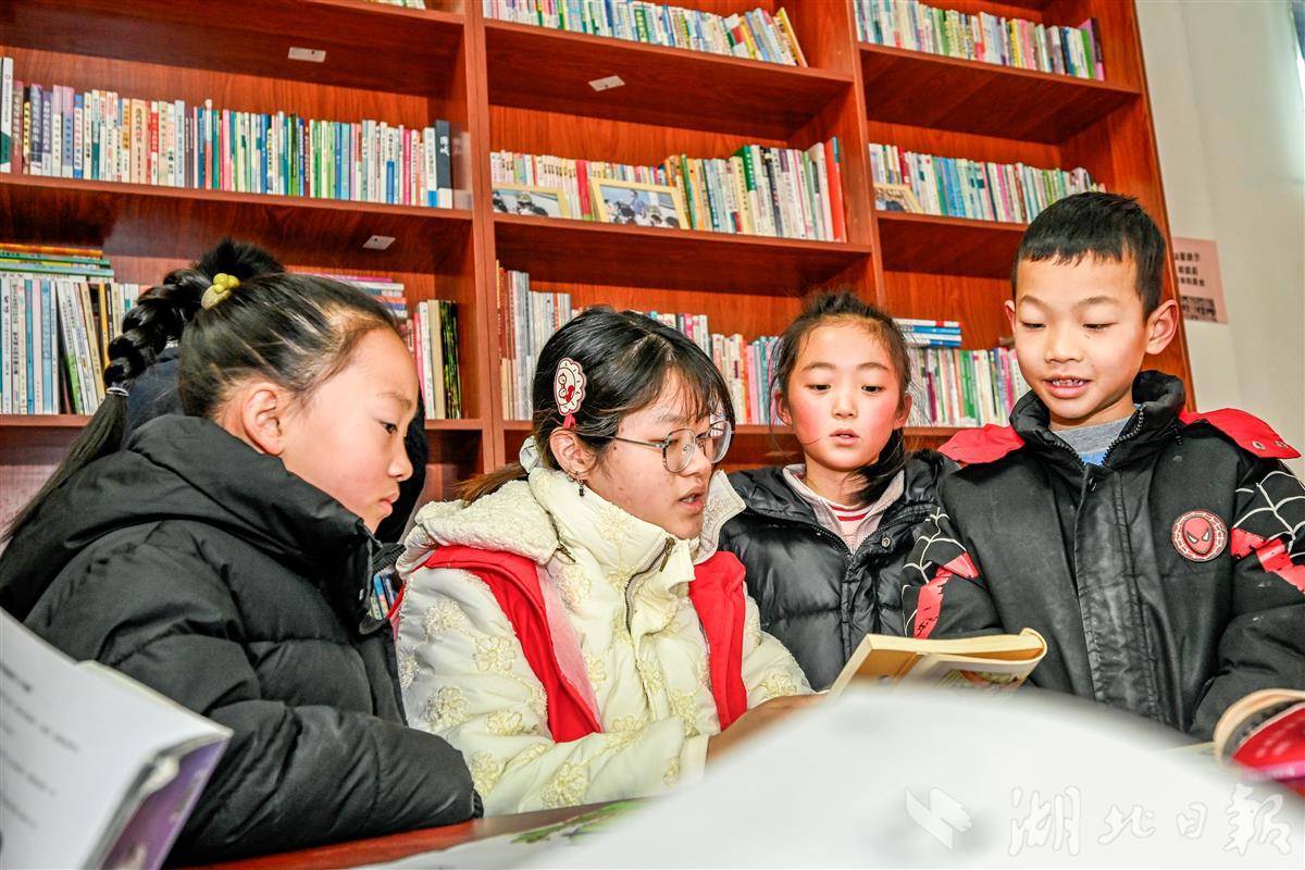 2月1日,在黄冈市英山县杨柳湾镇竹林铺村的村级书屋里,志愿者正带着孩子们阅读图书,这座“家门口的图书馆”成为寒假期间孩子们的精神乐园。