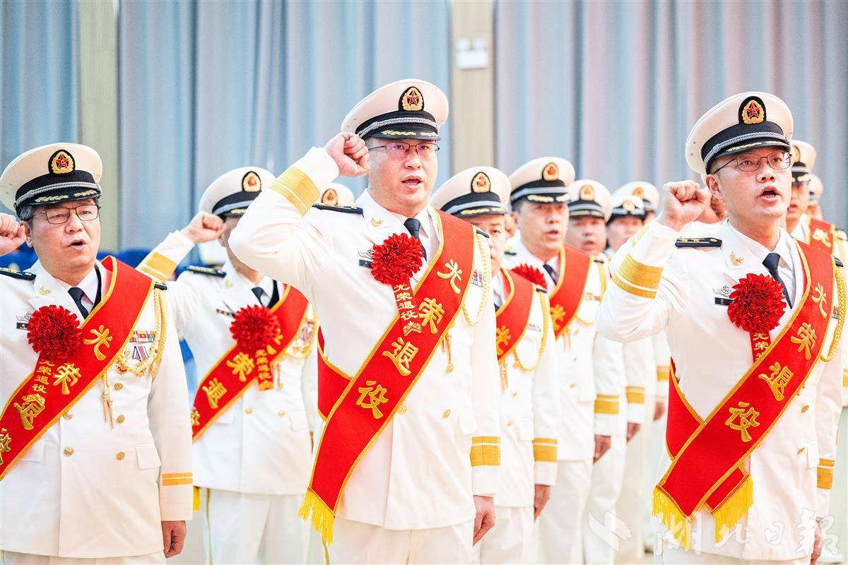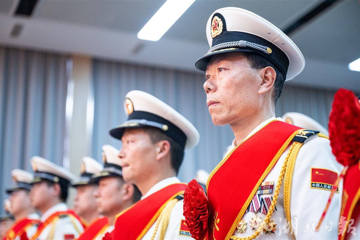 2月3日下午,海军工程大学举行2025年度军官退役仪式,退役军官胸戴红花、肩披绶带,军容严整、身姿笔挺。(湖北日报全媒记者 任勇 王际凯 通讯员 曹翰文 摄)