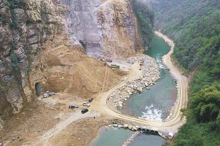 1月30日,恩施市屯堡乡马者村,群山环绕中的姚家平水利枢纽工程建设现场机械轰鸣、车辆穿梭。在已贯通的2号导流洞内,工人们正手持铲子、毛刷,仔细清理底板和岩壁上的渣土碎石,随后用高压水枪进行全面冲洗。