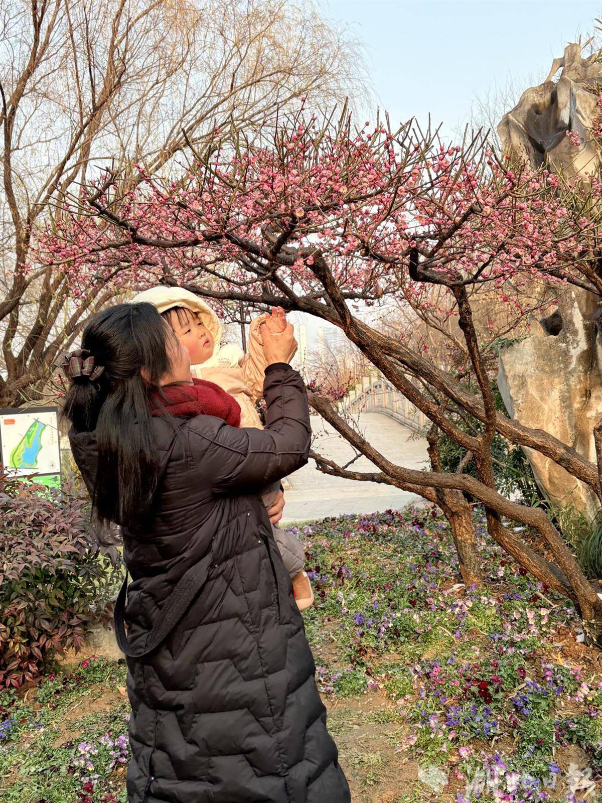 近日阳光甚好,不少市民游客携家带口,在梅树下散步、拍照、跳舞、打太极,尽情享受这早春的美景。一位正在拍照的市民笑着说:“这些梅花开得太漂亮了,红红火火的,和过年的气氛特别搭!”