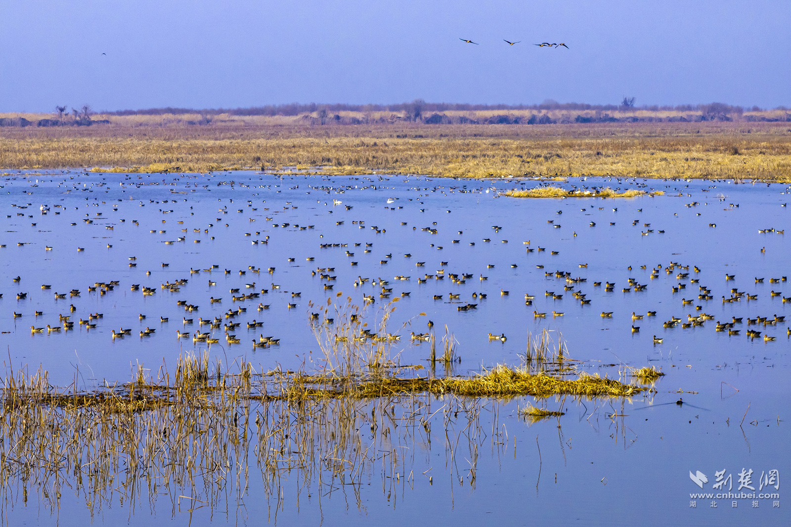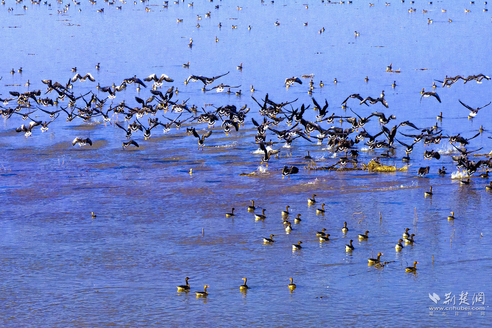 近日来,洪湖湿地国家级自然保护区大规模“鸟浪”景象频现。