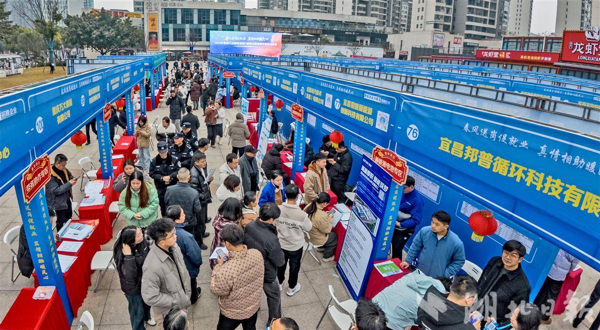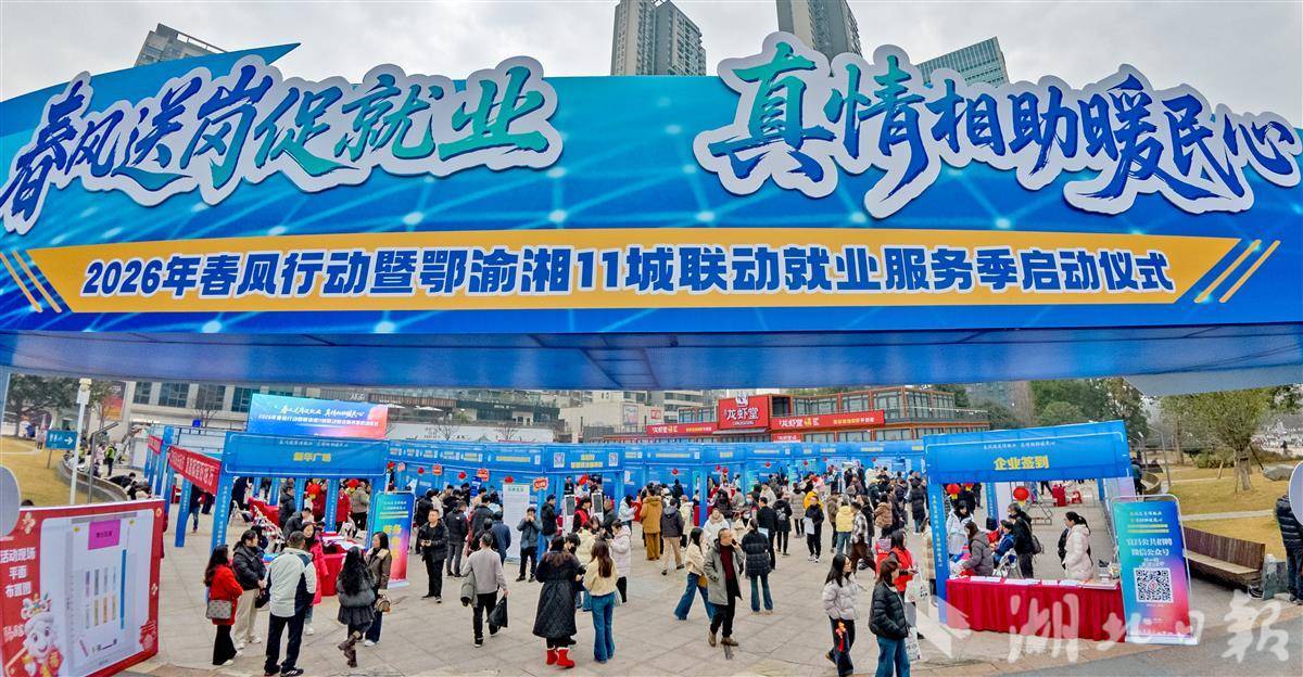 2月4日,2026年春风行动暨鄂渝湘11城联动就业服务季在宜昌启动,该市“春风行动暨就业援助季”同步开启。活动由宜昌主办,联合重庆万州、湖南张家界等10城,旨在深化区域人力资源协同,推动劳务协作、信息互通与服务共享。招聘现场设9大服务专区,107家企业(含安琪酵母、邦普等)提供5326个岗位,覆盖化工新材料、新能源电池等领域。此次春风行动将持续至3月底,计划开展200+场次招聘,提供5万个次岗位,助力2万人以上达成就业意向。(湖北日报全媒记者 刘曙松 摄)